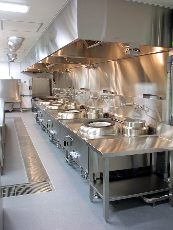 廚房設(shè)施通常包括烹飪加熱設(shè)備、處理加工類設(shè)備、消毒和清洗加工類設(shè)備、常溫和低溫儲存設(shè)備等。通常用的廚房的配套設(shè)施包括:通風(fēng)設(shè)備如排煙系統(tǒng)的排煙罩、風(fēng)管、風(fēng)柜、處理廢氣廢水的油煙凈化器、隔油池等。