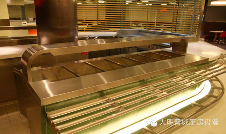 7、根據(jù)動(dòng)作設(shè)計(jì)必須熟悉廚師的工藝動(dòng)作,根據(jù)廚師工作時(shí)的需要配置設(shè)備,設(shè)計(jì)操作空間,遠(yuǎn)近大小要合適舒服。例如,刀工取料、洗涮、切配、腌醬、裝盤、傳遞、清理案面都需要在合理的范圍內(nèi)配置設(shè)備,這就需要制冷保鮮、工作臺、水池、碗柜等幾種設(shè)備搭配使用,距離太遠(yuǎn)使用不方便,就會浪費(fèi)時(shí)間,消耗體力,降低工效率。