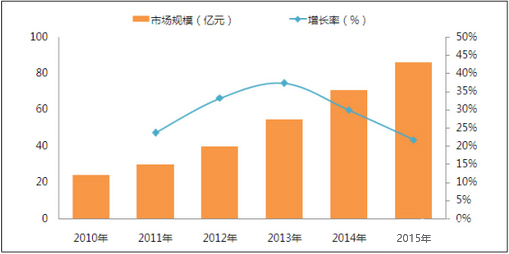 2010-2015年中央廚房設(shè)備市場規(guī)模變化趨勢圖