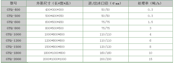 GYQ系列餐飲廢水隔油器是陜西大明廚具研發(fā)生產(chǎn)的產(chǎn)品。其主要特點(diǎn)是油水分離率高、無動(dòng)力、安裝維修保養(yǎng)方便。