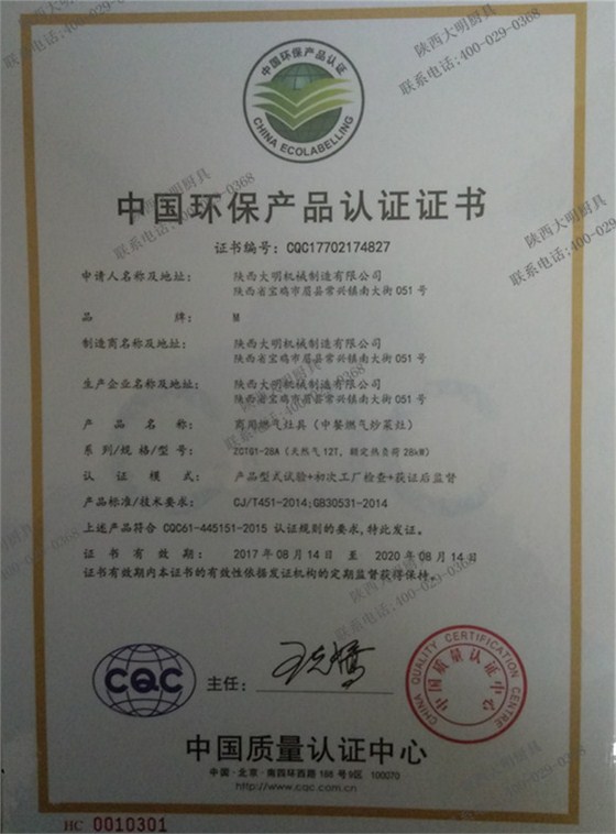 中國環(huán)保產(chǎn)品認(rèn)證證書